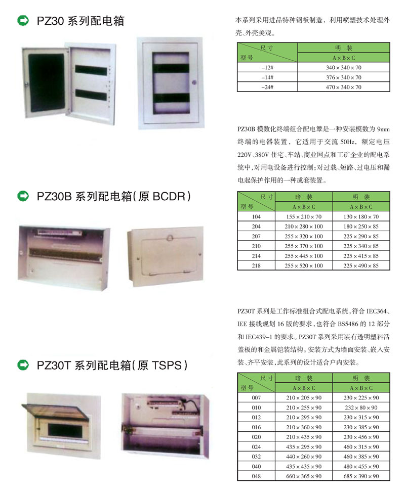 PZ30系列配电箱、各种非标动力、照明箱