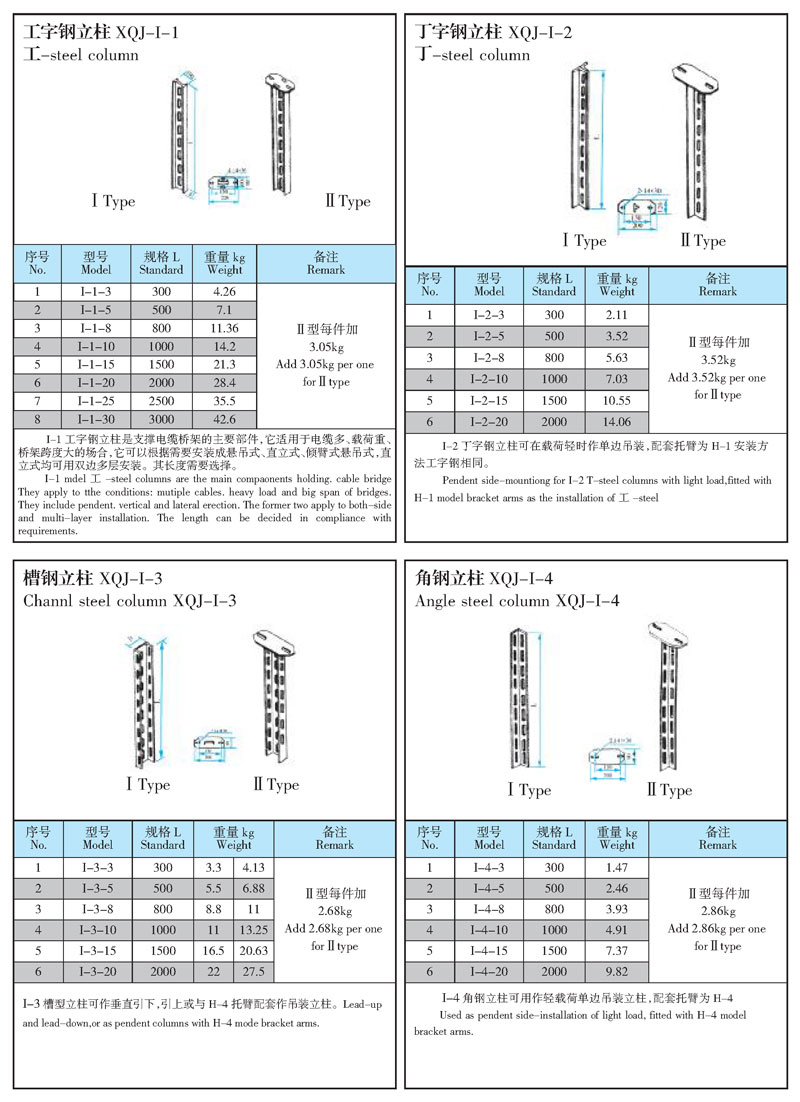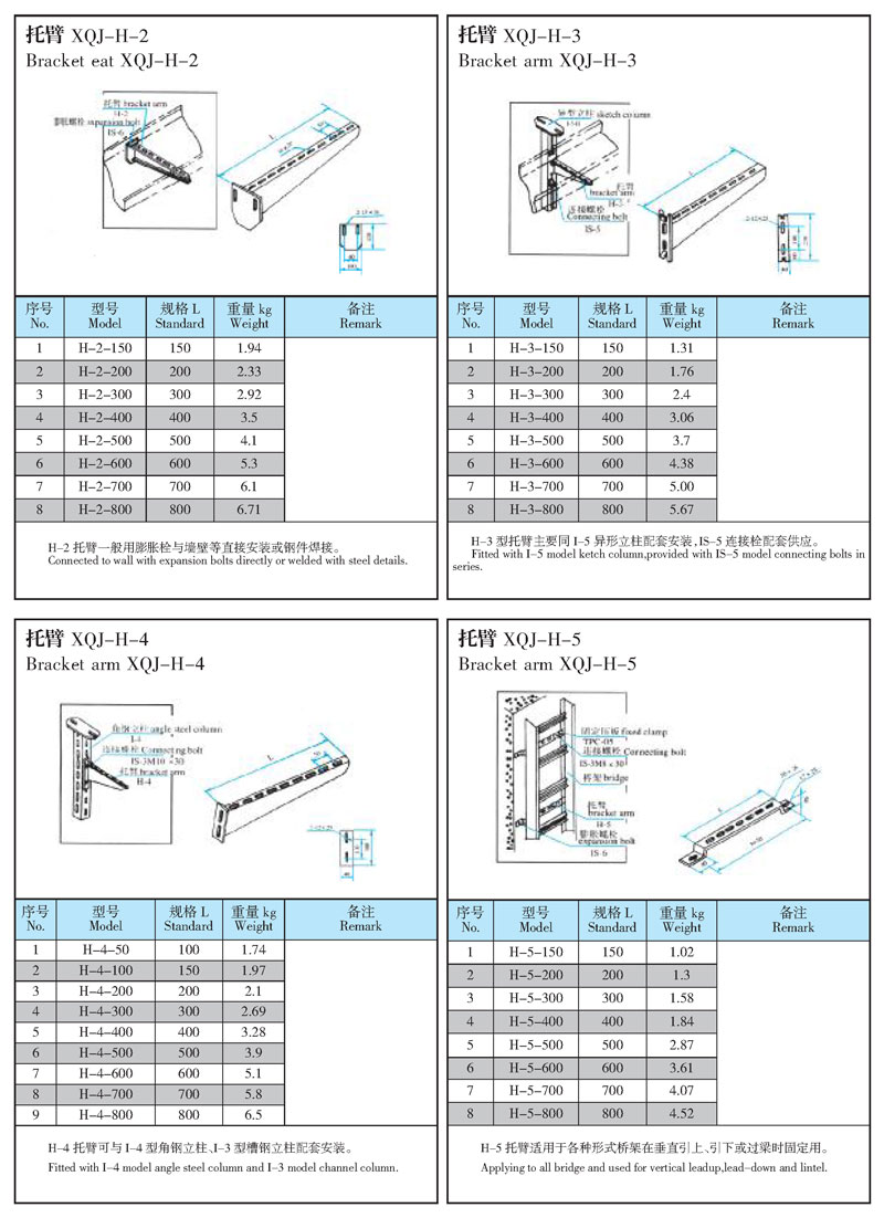 支架是支撑电缆桥架和电缆的主要部件。它由立柱、立柱底座、托宵等组成 。它具有结构简单、重量轻、强度大、造型美、安装灵活、可满足不同环境条件(工艺管道下、楼板下、墙壁上、电缆沟内)和不同形式(悬吊式、直立式、 侧立式、单边、双边和多层等)的安装 。
