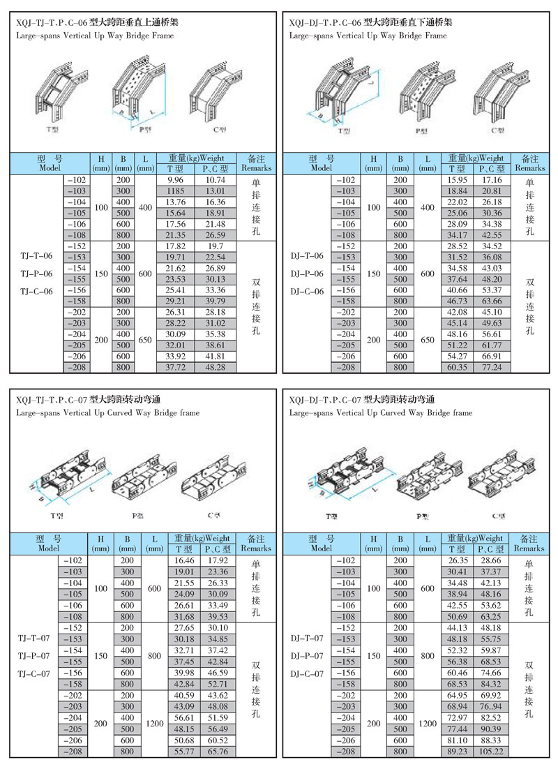 大跨距电缆桥架是一种较一般电缆桥架的支撑跨度大,且由于结构上设计合理,因而又比一般电缆桥架具有承裁能力大的特点,所以它不仅适用于炼油、化工、纺织、机械、治金、电力、电视广播等工矿企业的室内外电缆架空的敷设,也可作为地铁、人防工程等地下工程等地下工事电缆的敷设。